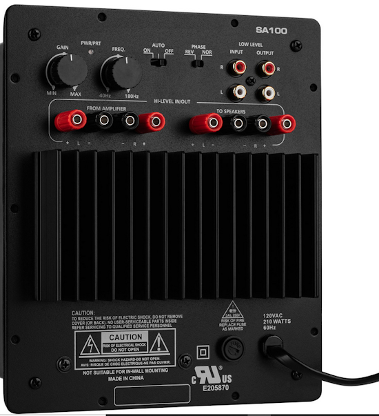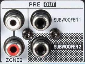 ![]() SPEAKER CONNECTIONS Some loudspeakers only allow you to connect bare wire while more expensive speakers will have posts which allow bare wire, banana or spade connections. ![]() Speaker binding posts: Banana connectors ![]() Stereo speaker wiring ![]() Surround speaker wiring on audio video receiver Surround sound speaker hook up diagram: ![]() This wiring diagram shows a 5.1 surround sound setup. ![]() This hook up diagram shows a 6.1 surround sound setup with two front speakers, a center speaker, two surround speakers, a back surround speaker and a powered subwoofer connection. Your receiver must be 6.1 or 7.1 capable, not just 5.1 capable in order to hook up this setup. ![]() Surround sound 7.1 speaker locations ![]() Typical audio/video receiver rear panel loudspeaker connections. 6.1 capable with an extra set of front speakers for another room. Atmos: Height Speakers Additional height speakers add realism to home theater with Atmos metadata embedded into Dolby Digital Plus (lossy) or Dolby TrueHD (lossless) audio which can be available on Blu-ray or streaming apps. You may want to add 2, 4 or more height speakers to your home theater setup. ![]() Four height speakers, two subwoofers, seven full range speakers for a realistic three dimensional sound arena. With Atmos, sound moves around the listener. Audio Video Cables and Connections How to hook up a Powered Subwoofer ![]() A Receiver with Pre-Outs, typically surround receivers, will at least have a Pre-Out for a powered subwoofer connection which uses a high quality RCA audio cable. Some receivers can offer two connections, one for a second subwoofer speaker. Pre-Outs mean "pre amplification or before amplification" meaning it is a "line level" signal or sometimes called a "low level" signal. The "Speaker Level" signals are high level (more power) from the speaker binding posts to drive the loudspeakers. ![]() A powered subwoofer will have a power cord in the rear to provide current to the built-in amplifier. You need a receiver with a dedicated output for a subwoofer using an RCA audio cable to connect receiver to subwoofer. The powered subwoofer will handle the sound amplification so your receiver does not have to. Subwoofers can offer both line level (low) and speaker level (high) input and output ports for a variety of configurations and options. Subwoofer adjustment knobs usually include a volume control or Gain and a frequency adjustment. A subwoofer's adjustable frequency, called the crossover knob (Low-Pass Filter), sets the upper limit of bass it plays, typically 40Hz-180Hz, blending with your main speakers by cutting off higher sounds so they don't overlap, with common settings such as 80Hz.